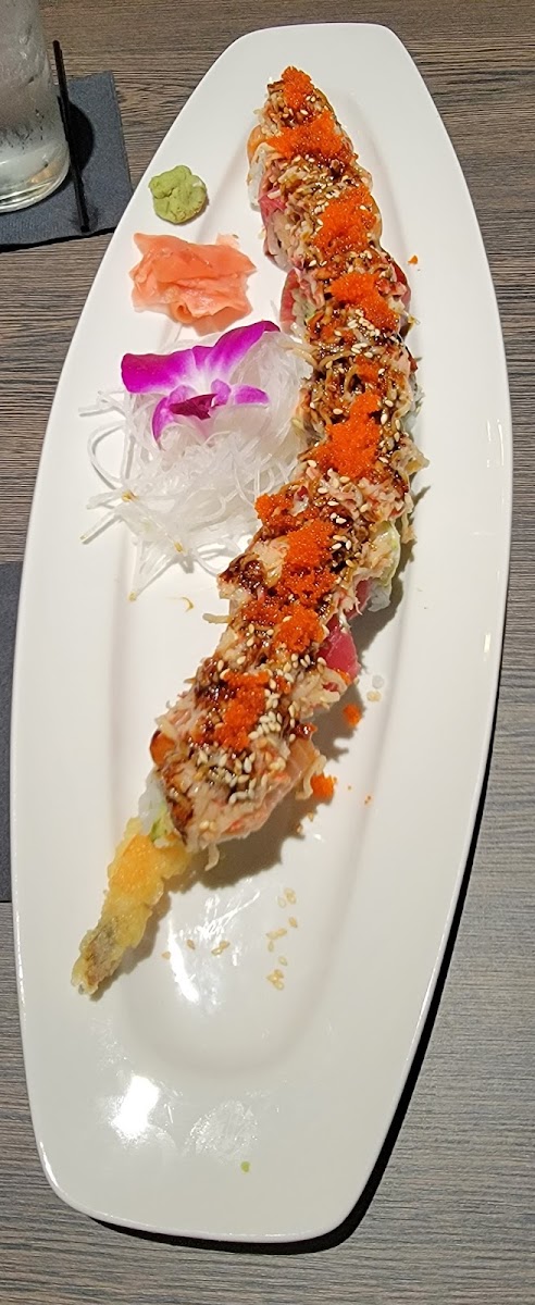 Good food, high prices. Typical sushi in this area runs $12-$15 per roll. Here you can expect to see pricing $19-$45 per roll. We got the Dragon Egg for the app. Good flavor but didn't care for it being fried. We did wish the menu would have said that it was fried so we could have asked for them not to fry it or chosen something else. For our entrees we got the Carolina roll which was great and the Rainbow roll which would have been great if the ginger on top wasn't so strong. It really overpowered the rest of the roll so we chose to take that off of each one before eating the rest. Again, the menu did not list this or we likely would have asked to leave the ginger off. Overall the wait staff was very friendly, food came out fast, and everything was really clean. Would revisit for a special occasion but would not be somewhere we would visit often. Total price for our 2 rolls and app, with tip was $67.
